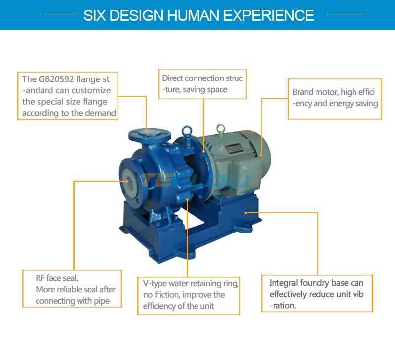IHF-L fluoroplastics centrifugal pump, according to international standards, overcurrent components are all fluorine plastics, load-bearing parts are metal materials, equipped with external bellows mechanical seals, grinding materials are alumina, silicon carbide, fluoroplastics, cemented carbide, It can be selected according to different working conditions.